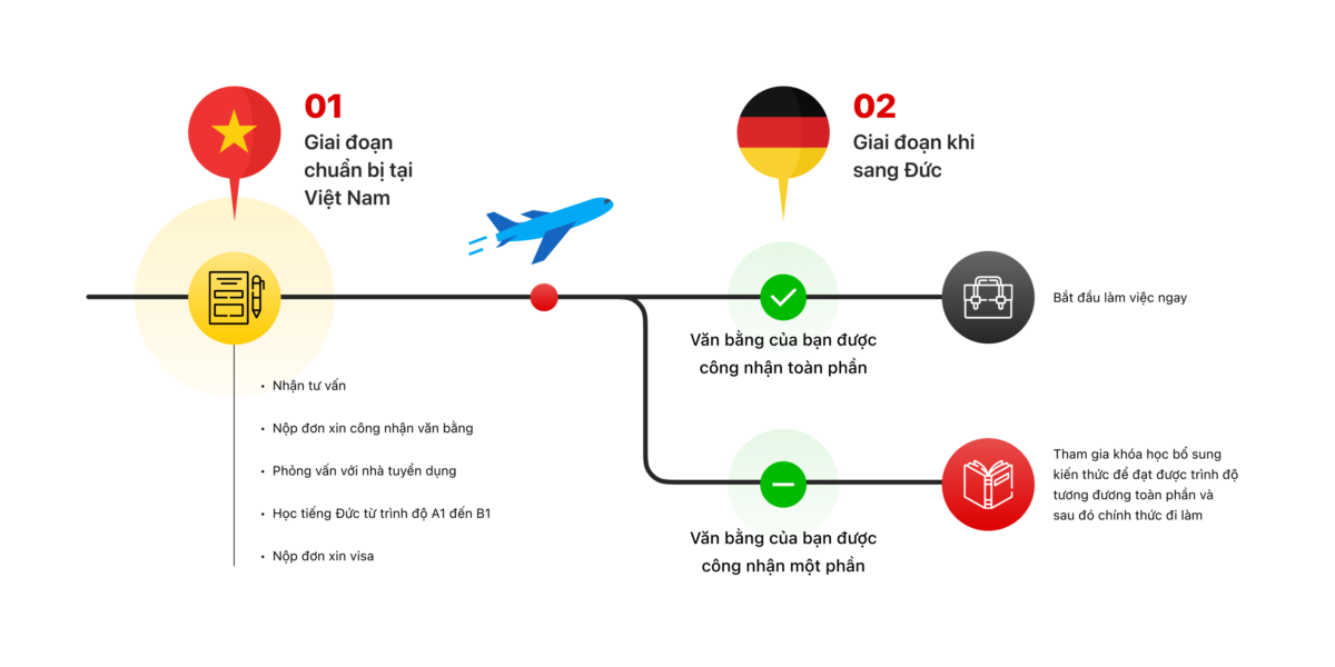 Thu nhập sau khi ra trường từ 67 triệu VNĐ/tháng trở lên. Không chỉ vậy, người lao động Việt Nam được hưởng đầy đủ chính sách và chế độ công việc như một người lao động công dân Đức.